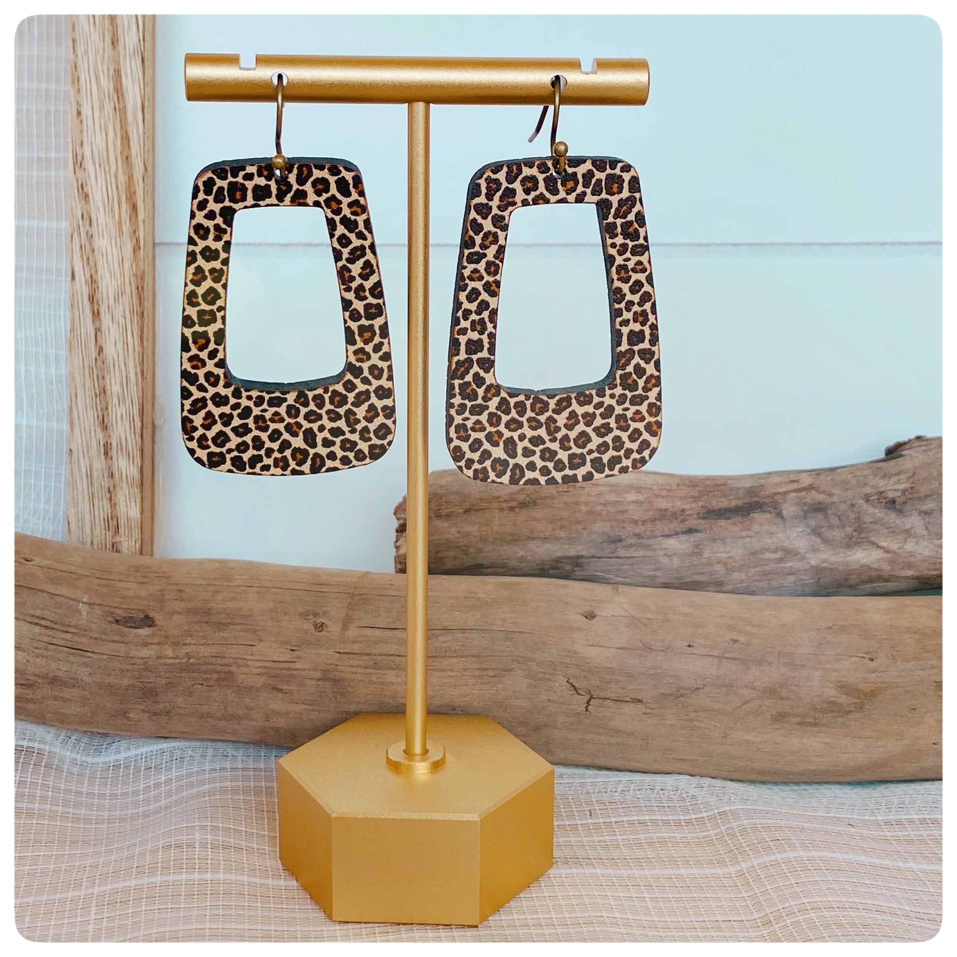 These earrings measure 2.0” in. (L) x 1.25 in. (W) and are 1/8" thick