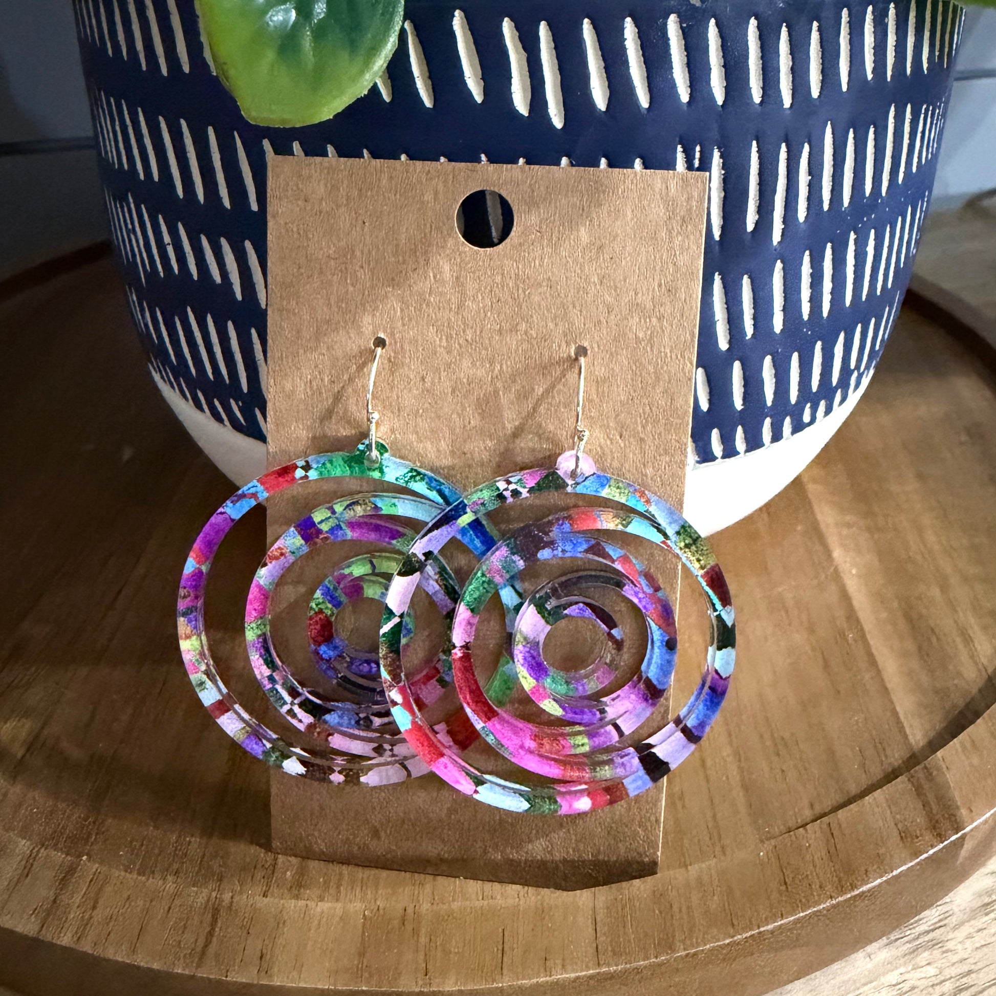 These earrings measure 1.75” in. (L) x 1.75” in. (W) and are 1/8" thick.