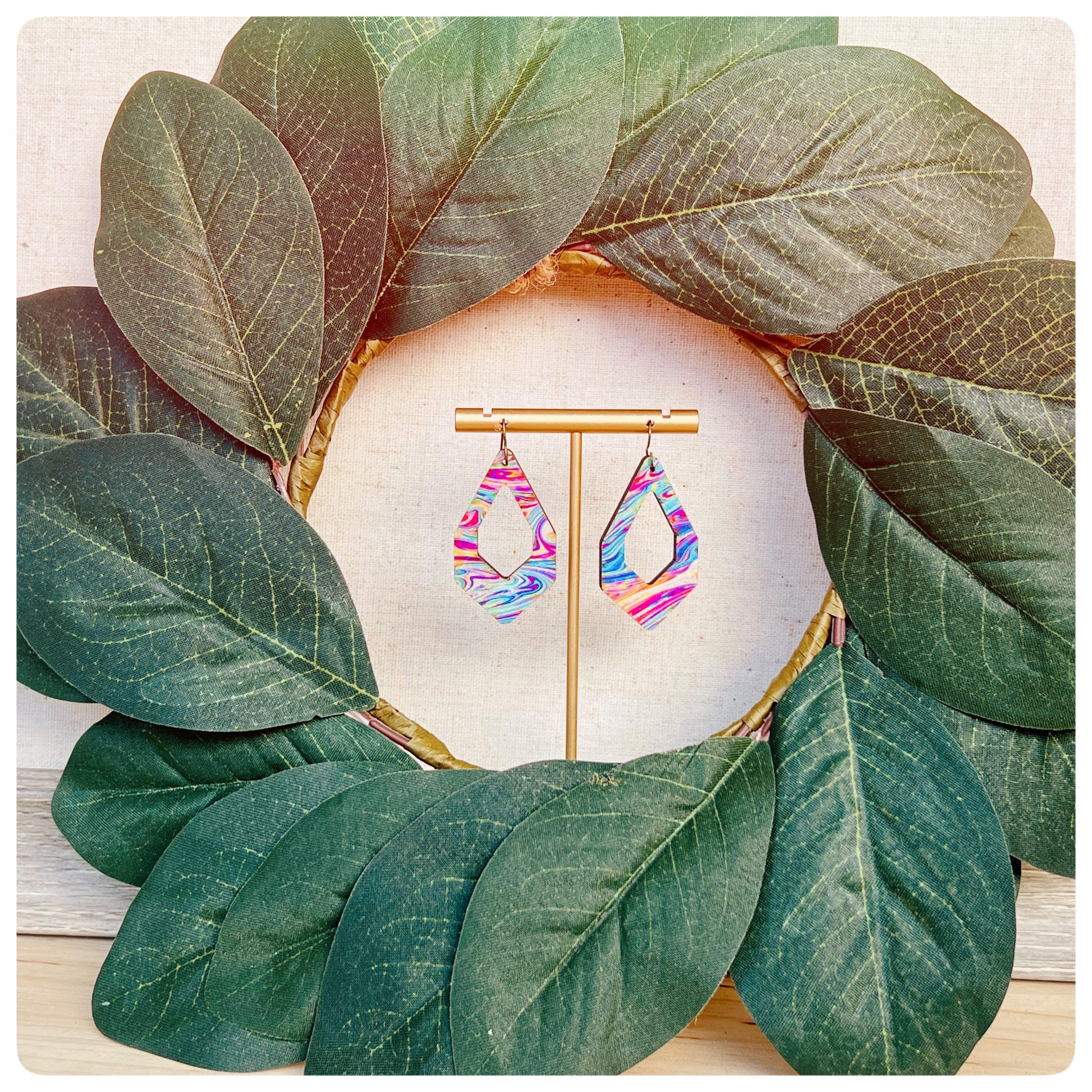 These earring measure 2.25” in. (L) x 1.0 in. (W) and are 1/8" thick.